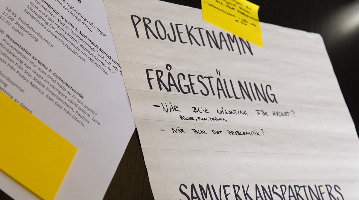 Efter presentationerna delades de drygt trettio deltagarna in i mindre samtalsgrupper med slutuppgiften att ta fram projektidéer baserat på diskussionens innehåll. Bland de idéer som genererades under dagen kan nämnas “Jag får spel! - Vuxnas guide till en nyanserad bild av gaming”, “Skärmtid 2.0” samt en kurs i “Good game design”, som undersöker frågan “Hur designar vi val i spel som kan minska toxicitet?”.